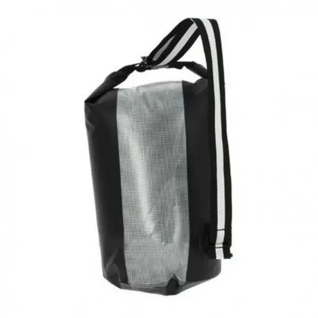 Sac bandouliĂšre avec fenĂȘtre transparente 100% Ă©tanche en tarpaulin, fermeture par enroulage.